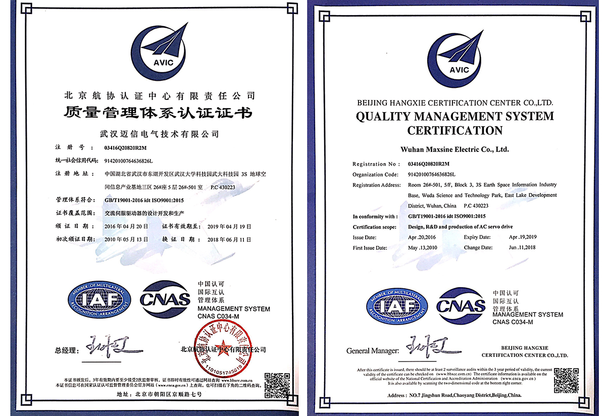 • ISO9001質(zhì)量認(rèn)證 頒發(fā)時間:2010年5月 頒發(fā)單位:北京航協(xié)認(rèn)證中心有限責(zé)任公司