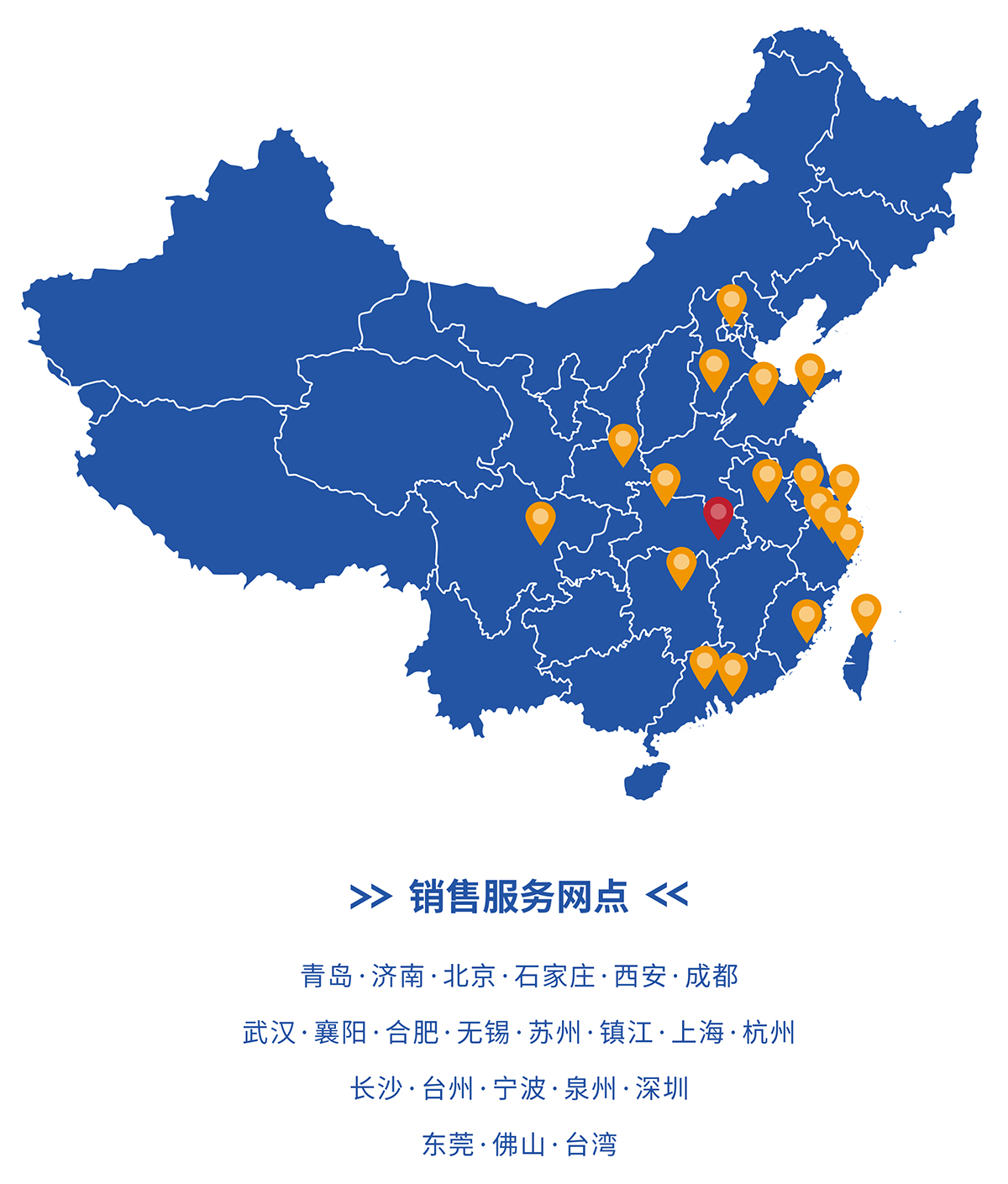 以武漢為中心,全國(guó)目前已有22個(gè)銷(xiāo)售服務(wù)網(wǎng)點(diǎn),深入客戶(hù)現(xiàn)場(chǎng),為客戶(hù)提供應(yīng)用方案及售后服務(wù)。