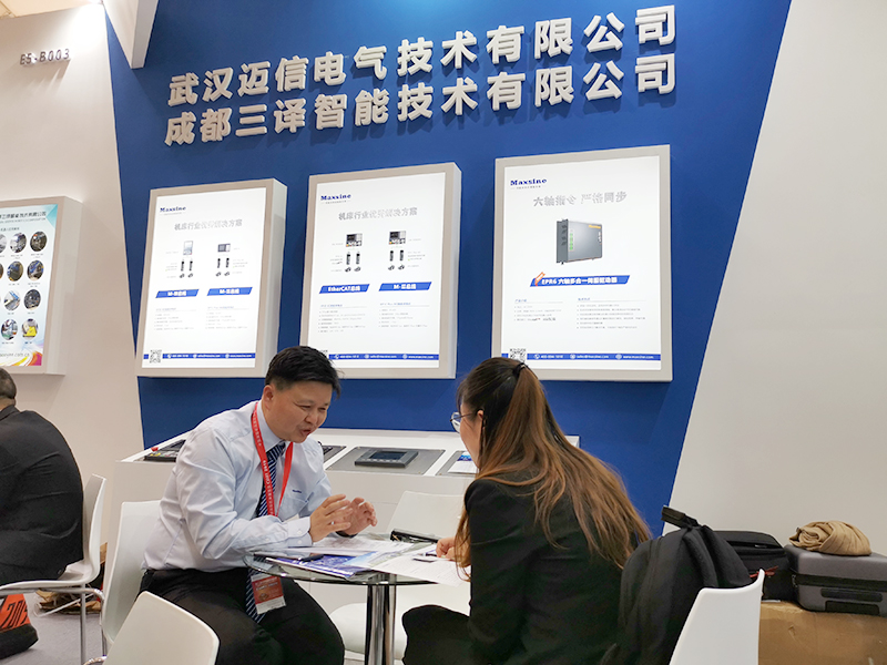 邁信電氣所在的E5館主要展品為數(shù)控系統(tǒng),作為數(shù)控系統(tǒng)的主要構(gòu)成部分,伺服驅(qū)動器與伺服電機是E5館觀眾的主要關注對象。