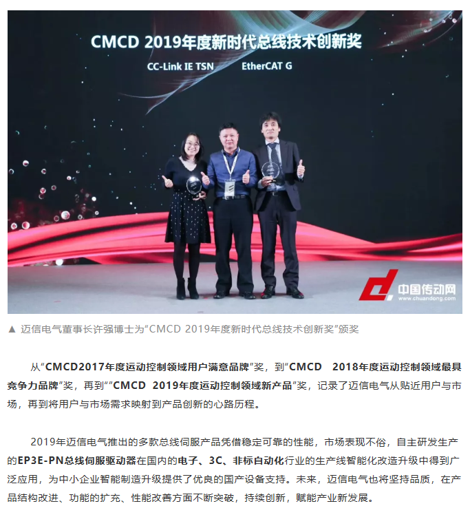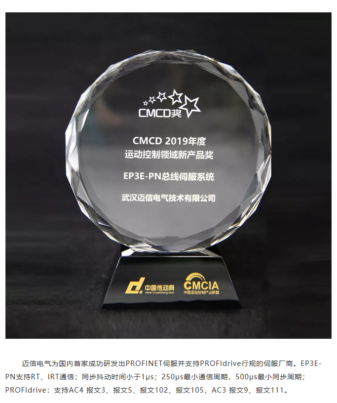 首頁>文章中心>公司新聞>專注產(chǎn)品 順應(yīng)市場 | EP3E-PN榮獲CMCD 2019年度運(yùn)動控制領(lǐng)域新產(chǎn)品獎