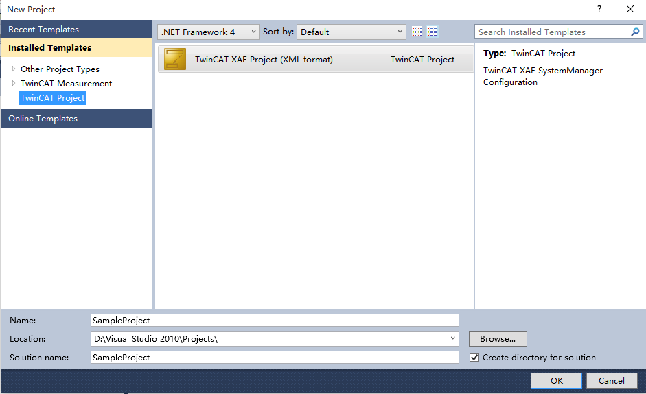 在建立工程界面中選擇TwinCAT Project,填入工程名稱,選擇工程保存地址,點(diǎn)擊OK。