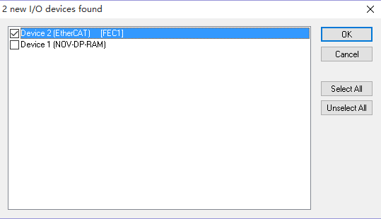 在彈出的窗體中勾選(EtherCAT),點(diǎn)擊OK,