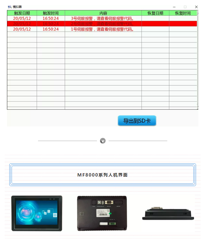 首頁(yè)>文章中心>應(yīng)用教程>邁信電氣MF系列人機(jī)界面_報(bào)警與事件顯示功能案例