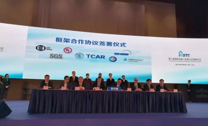 當日,中國國家機器人檢測與評定中心(簡稱國評中心)與UL(美國保險商實驗室)、CSA(加拿大標準協(xié)會)、SGS(瑞士通用公證行)、TUV(德國技術監(jiān)督協(xié)會)等國際認證機構簽署合作備忘錄,加強機器人標準檢測認證方面的國際合作。
