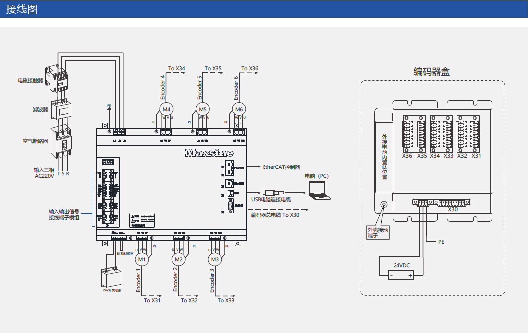 ● 電機(jī)編碼器信號通過外置解碼板進(jìn)行解碼,接線簡單、傳輸可靠