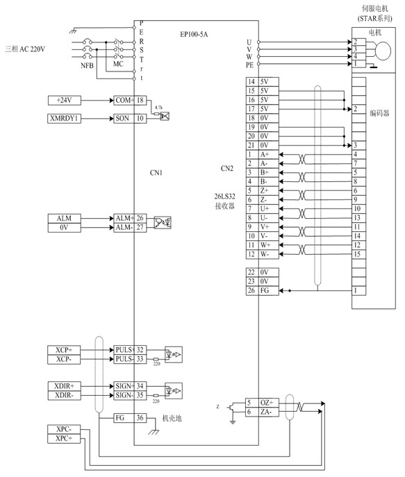 伺服驅(qū)動器與系統(tǒng)接線可按照說明書中位置控制接線方式: